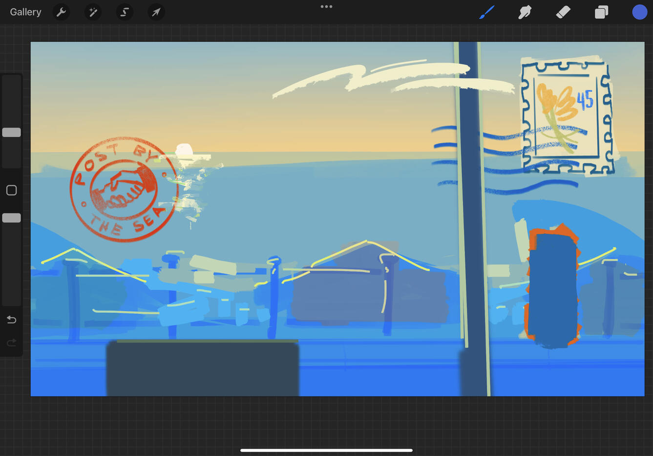 Created in Toon Boom Harmony with background assets made in Clip Studio Paint. Using Toon Boom’s perspective tool I created a parallax effect. I wanted to lean into the postcard aesthetic, including stamps and a paper cutout style. I had a lot of fun making this and I’m really happy with the final result!
